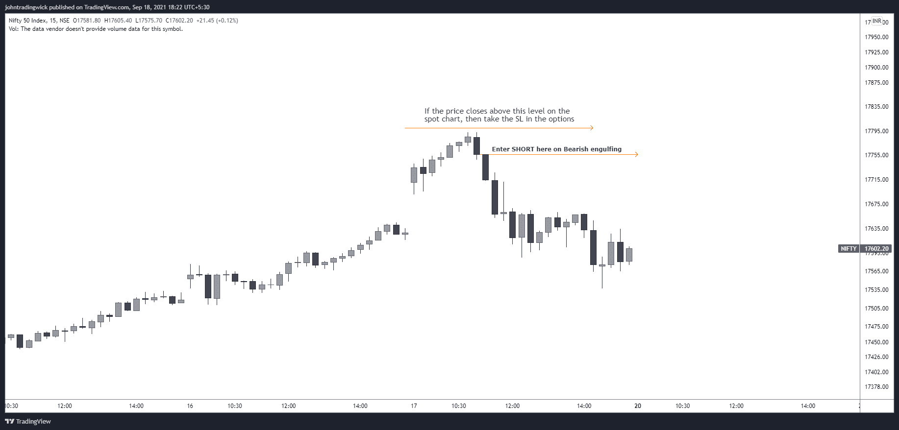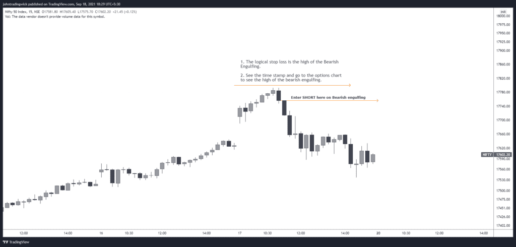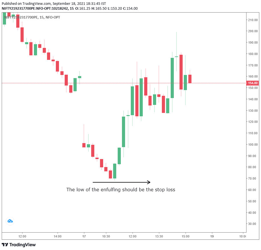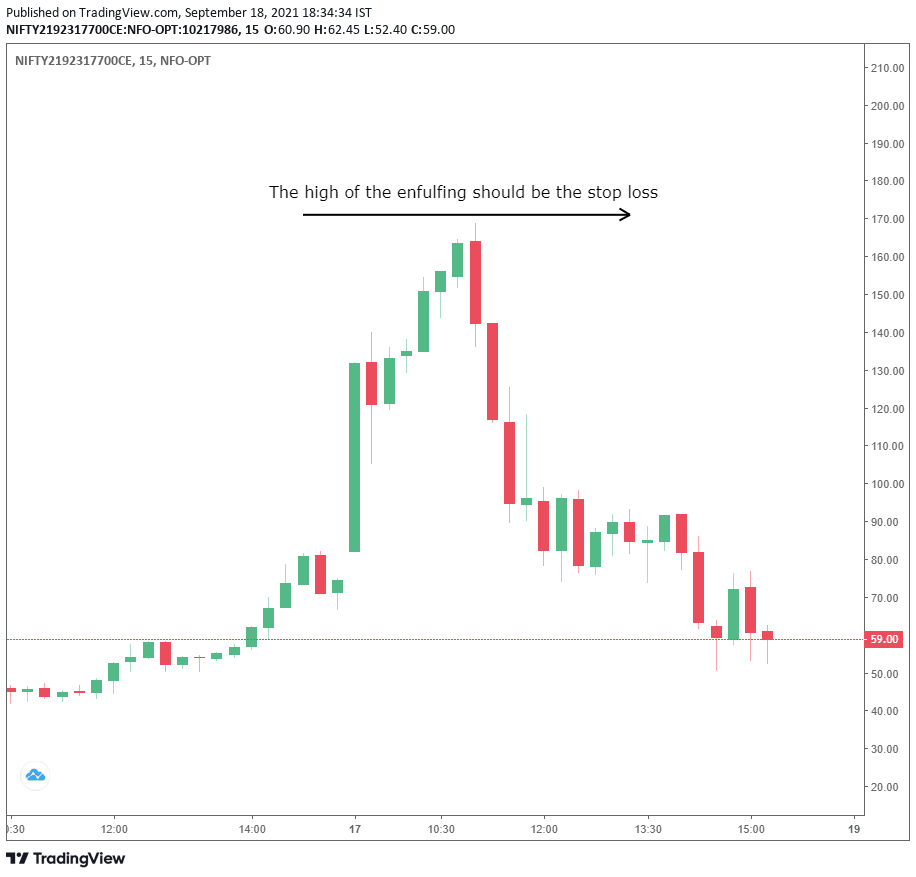 2. If you place the stop loss using the Options chart, you will be able to calculate the exact loss beforehand. To check the options chart, you must use your broker’s terminal or some paid third-party site. TradingView doesn’t provide option charts. This method is a bit difficult compared to the first method.