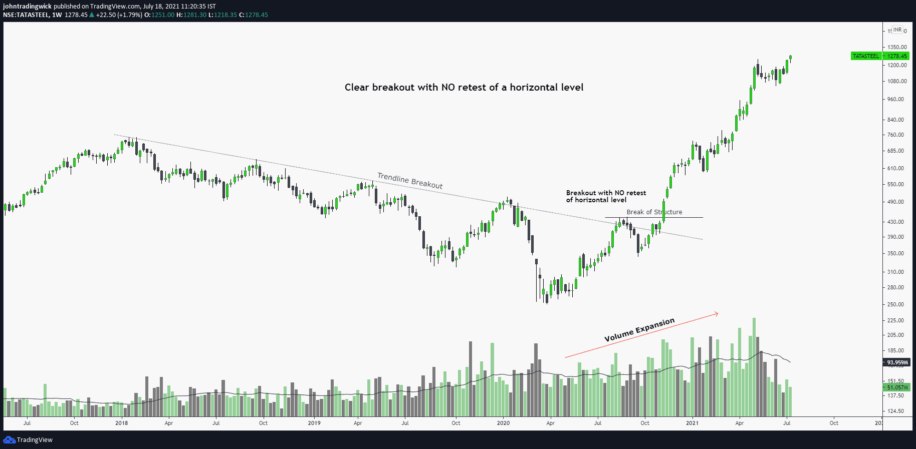 A lot of times the stock doesn’t give a retest of previous important levels. This is mainly the case when the trend is too strong and the buyers are way too aggressive. The stock will keep rallying until the momentum slows down, but by that time, it may be too late to open fresh positions. It’s always better to wait on the sideline in such cases.