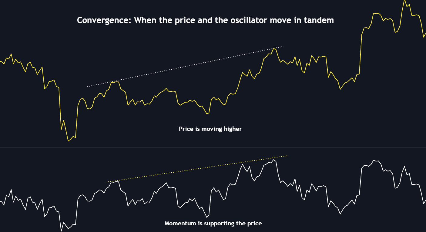 When the stock price moves in a specific direction, the momentum oscillator should also move in the same direction.