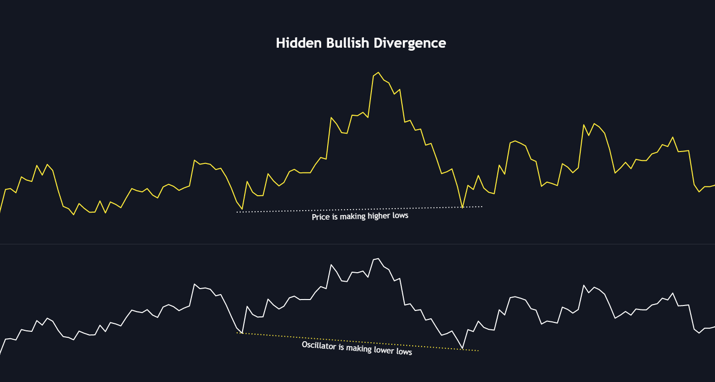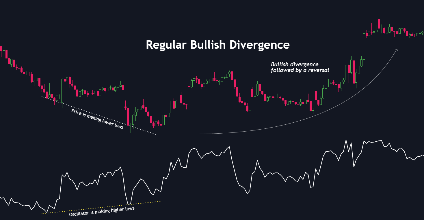 A bullish divergence occurs when prices fall to a new low while the oscillator fails to reach a new low (exception being hidden bullish divergence ). Positive divergence signals that the price could start moving higher soon. It has two sub-types: